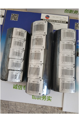 JX2色帶 | 110~160℃ | 25mm×100m 30mm×100m 35mm×100m | 打印清晰,附著力強(qiáng),非常規(guī)包裝有輕微粘帶 | 黑 | 適應(yīng)于紙張、聚乙膜(PE)、聚氯乙膜(PVC)等材質(zhì) |